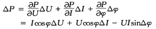 當(dāng)U、I、φ變化很小時,有功功率變化量△P相對當(dāng)U、I、φ未變化時P的變化率為: