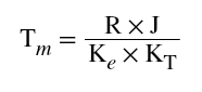 對(duì)于直流伺服電動(dòng)機(jī)和交流伺服電動(dòng)機(jī)的具體計(jì)算方法,可用電機(jī)端電阻R,轉(zhuǎn)動(dòng)慣量Jm,反電勢(shì)系數(shù)Ke,轉(zhuǎn)矩常數(shù)KT等參數(shù)表示: