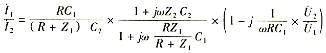 設電壓U1加在C1和C2的高壓端,電壓U2加載R的高電位端。Cx和Cs端鈕對地阻抗為Z1和Z2,注入Cx和Cs端鈕的電流為I1和I2,則