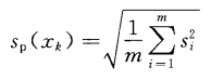 若對(duì)每個(gè)被測(cè)件已分別按n次重復(fù)測(cè)量算出了其實(shí)驗(yàn)標(biāo)準(zhǔn)偏差si,則m組測(cè)得值的合并樣本標(biāo)準(zhǔn)偏差sp(xk)可按公式12計(jì)算: