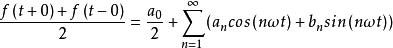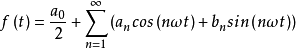 滿足一定條件(Dirichlet條件)的、以T為周期的時(shí)間的周期函數(shù)f(t),在連續(xù)點(diǎn)處,可用下述的三角函數(shù)的線性組合(傅里葉級(jí)數(shù))來表示: